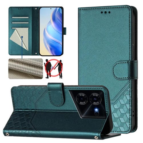 Funda de Cuero Rfid con Relieve en Panal para Tecno Pova 5 (Verde Pavo Real)