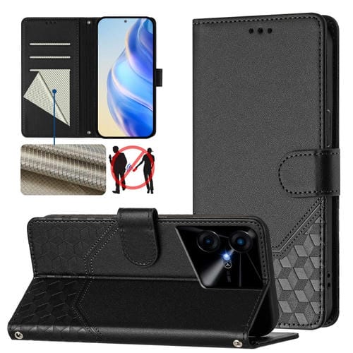 Funda de Cuero Rfid con Relieve en Panal para Tecno Pova Neo 3 (Negra)