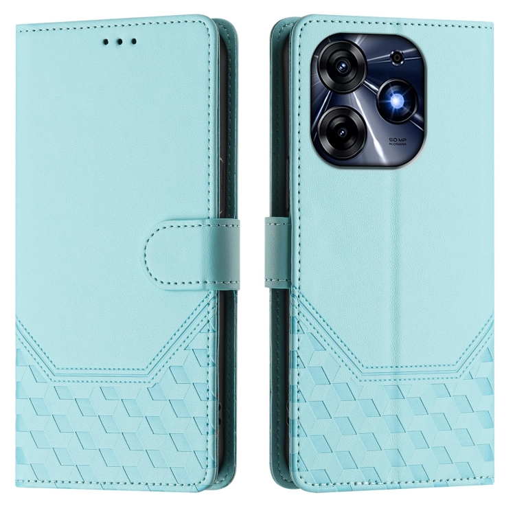 Funda de Cuero Rfid con Relieve en Panal para Tecno Spark 10 Pro 4G (Verde Menta)
