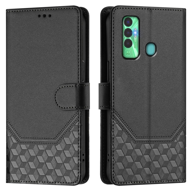 Funda de Cuero Rfid con Relieve en Panal para Tecno Spark 7P (Negra)