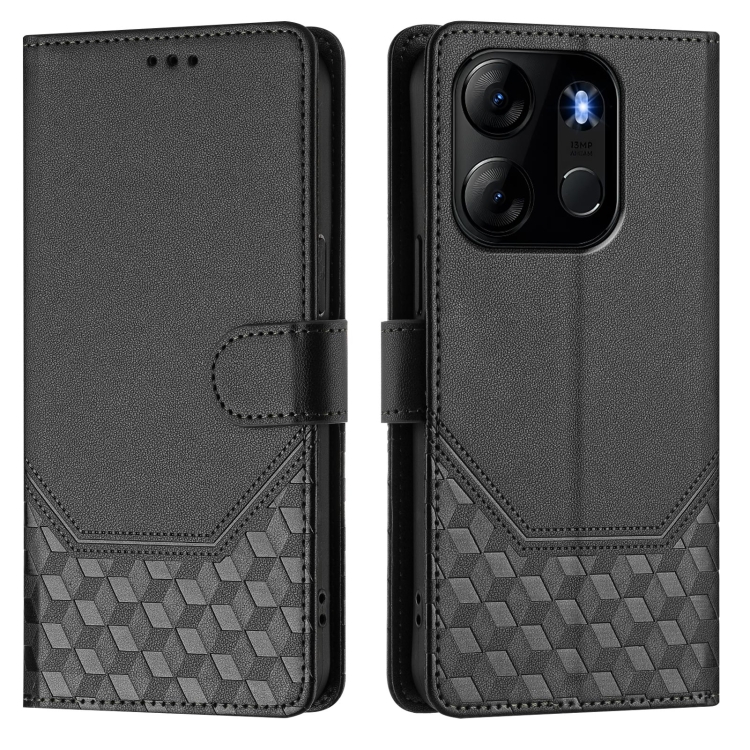 Funda de Cuero Rfid con Relieve en Panal para Tecno Spark Go 2023/Infinix Smart 7 (Negra)