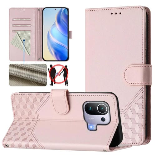 Funda de Cuero Rfid con Relieve En Panal para Xiaomi Mi 11 Pro (Rosa)