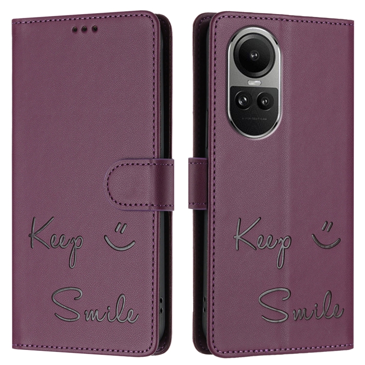 Funda de Cuero Rfid con Relieve Global Smile para Oppo Reno10/Reno10 Pro (Violeta)