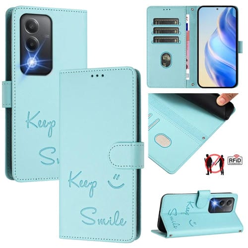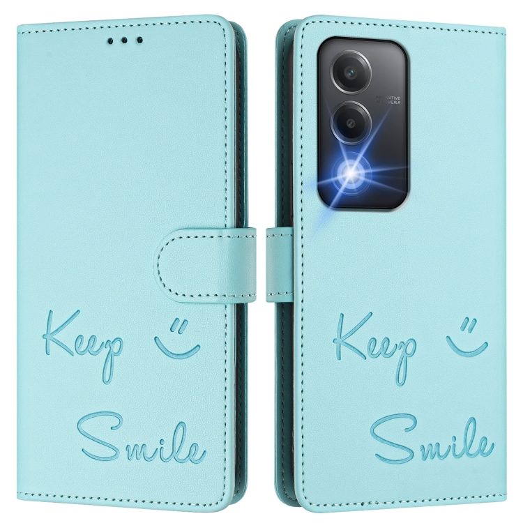 Funda de Cuero Rfid con Relieve Smile para Oppo K12X 5G (Verde Menta)