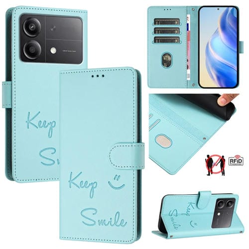 Funda de Cuero Rfid con Relieve Smile para Xiaomi Poco X6 Neo (Verde Menta)