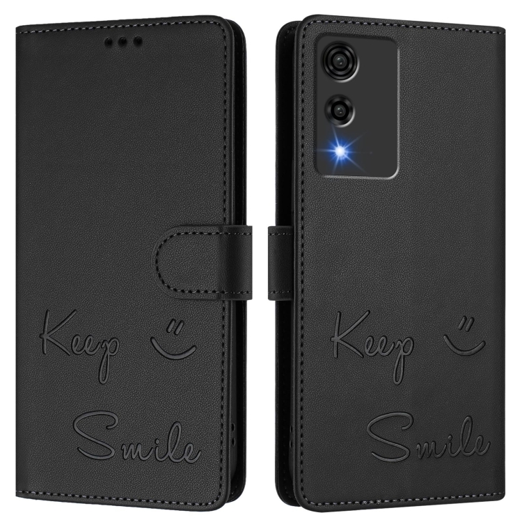 Funda de Cuero Rfid con Relieve Sonriente para Cubot A10 (Negra)