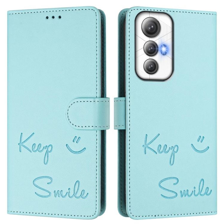 Funda de Cuero Rfid con Relieve Sonriente para Cubot Max 5 (Verde Menta)