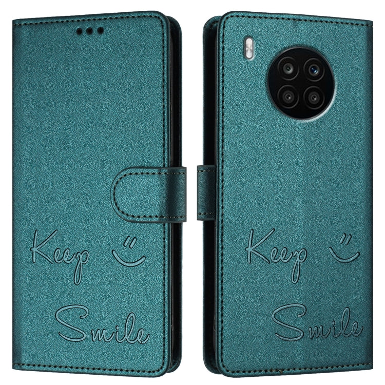 Funda de Cuero Rfid con Relieve Sonriente para Huawei Nova 8I (Verde Pavo Real)