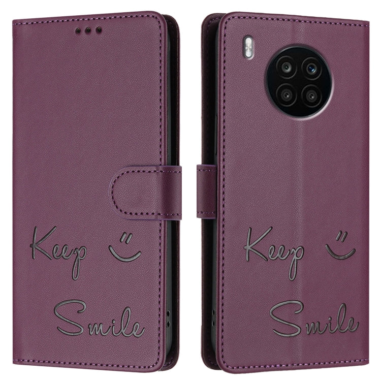 Funda de Cuero Rfid con Relieve Sonriente para Huawei Nova 8I (Violeta)