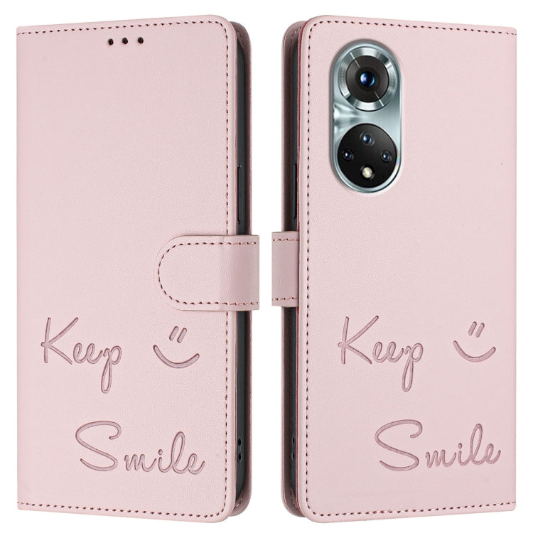 Funda de Cuero Rfid con Relieve Sonriente para Huawei Nova 9 Pro (Rosa)