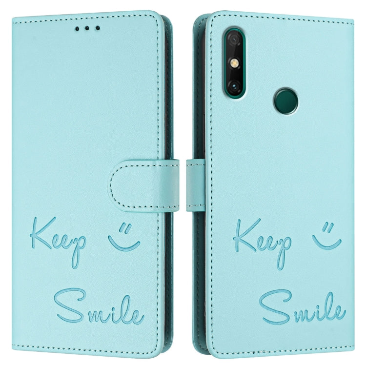 Funda de Cuero Rfid con Relieve Sonriente para Huawei P Smart 2021 4G (Verde Menta)