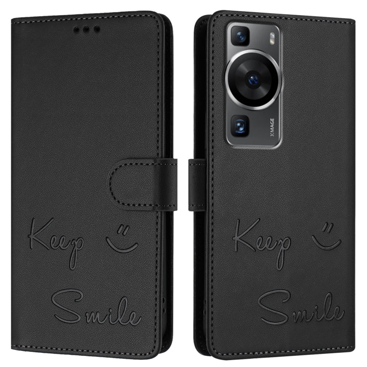 Funda de Cuero Rfid con Relieve Sonriente para Huawei P60/P60 Pro (Negra)