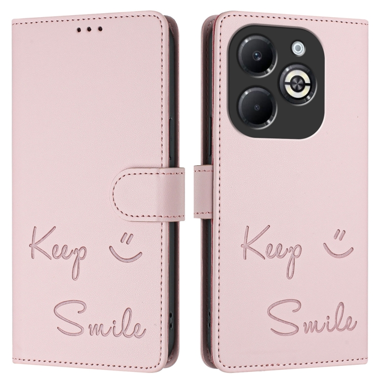 Funda de Cuero Rfid con Relieve Sonriente para Infinix Smart 8 Plus y Smart 8 Pro (Rosa)