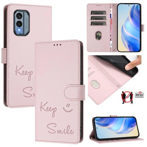Funda de Cuero Rfid con Relieve Sonriente para Nokia X30 5G (Rosa)