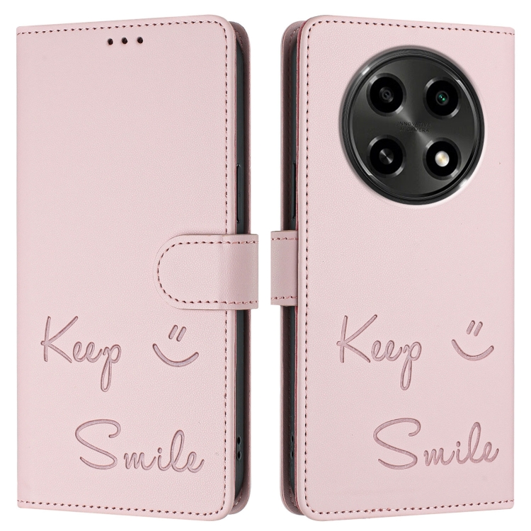 Funda de Cuero Rfid con Relieve Sonriente para Oppo A2 Pro 5G (Rosa)