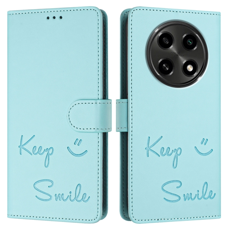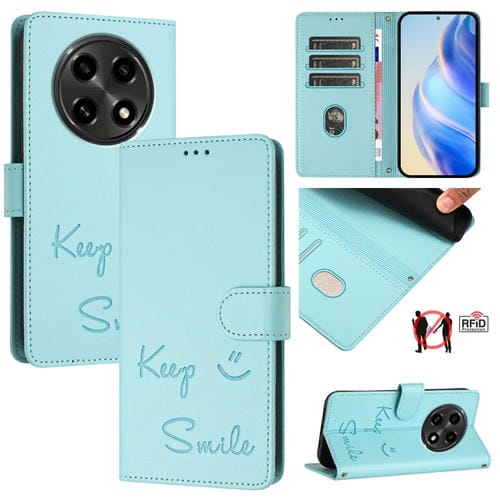 Funda de Cuero Rfid con Relieve Sonriente para Oppo A2 Pro 5G (Verde Menta)