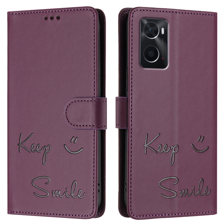 Funda de Cuero Rfid con Relieve Sonriente para Oppo A36 4G/A76 4G (Violeta)