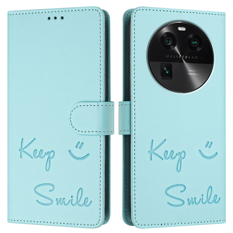 Funda de Cuero Rfid con Relieve Sonriente para Oppo Find X6 Pro (Verde Menta)