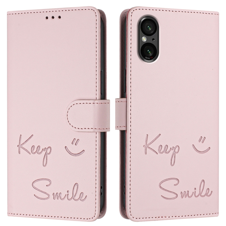 Funda de Cuero Rfid con Relieve Sonriente para Sony Xperia 5 V (Rosa)