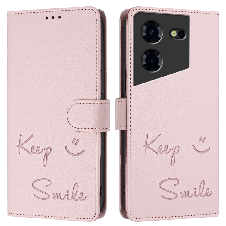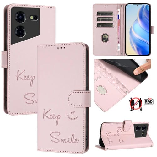 Funda de Cuero Rfid con Relieve Sonriente para Tecno Pova 5 Pro 5G (Rosa)
