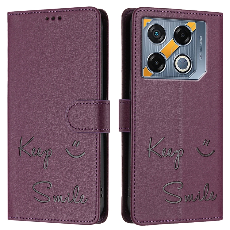 Funda de Cuero Rfid con Relieve Sonriente para Teléfono Infinix GT 20 Pro X6871 (Violeta)