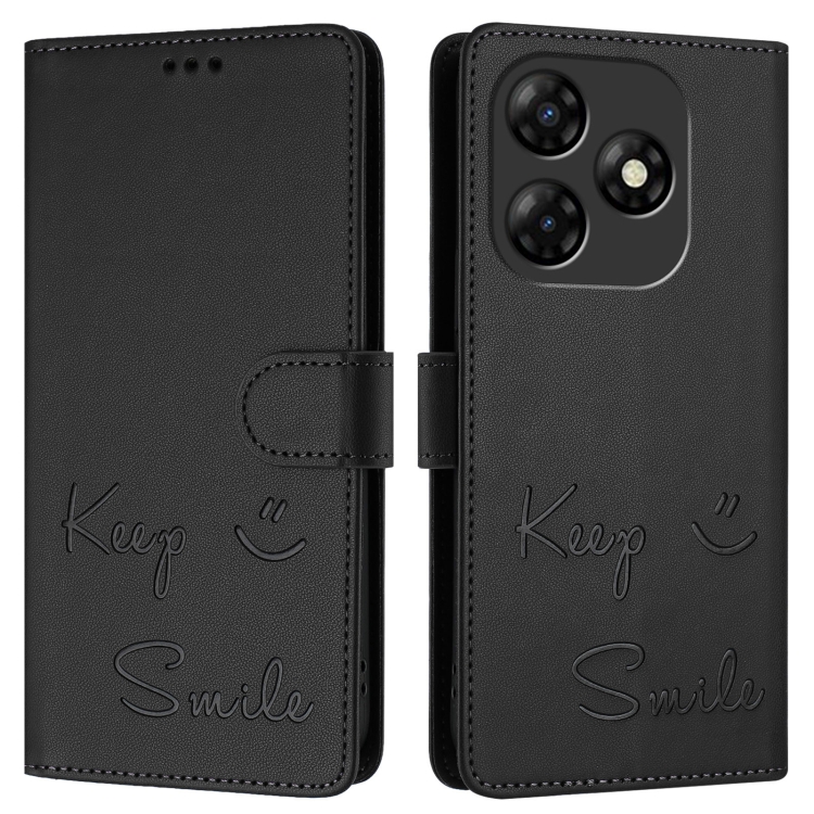 Funda de Cuero Rfid con Relieve Sonriente para Teléfono Itel P55 4G (Negra)