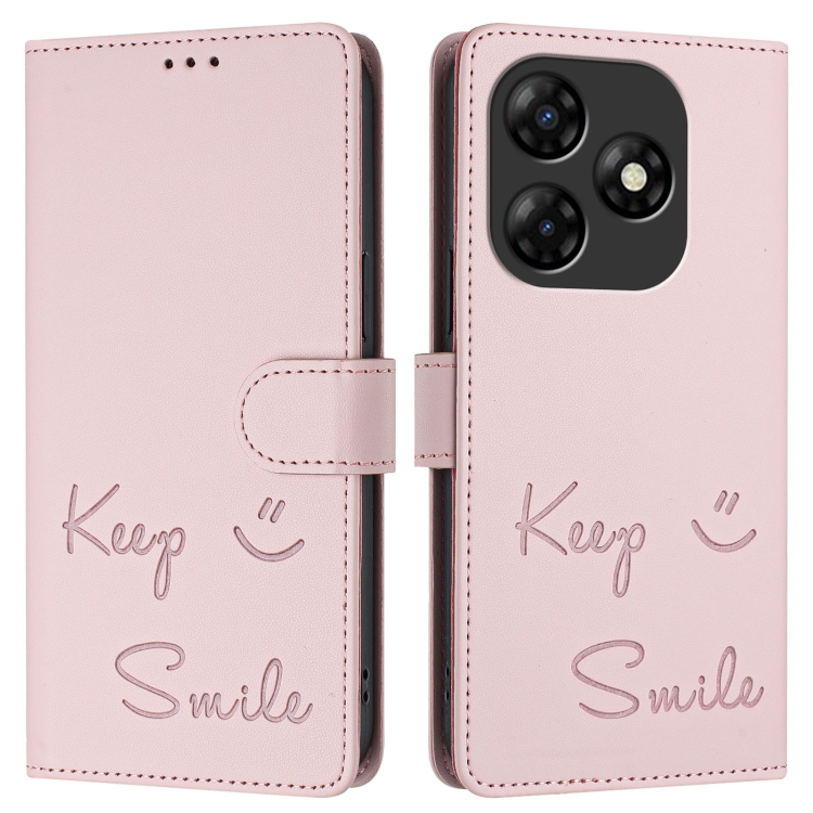 Funda de Cuero Rfid con Relieve Sonriente para Teléfono Itel P55 4G (Rosa)