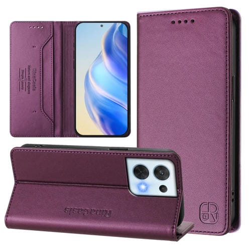 Funda de Cuero con Doble Pliegue y Succión Magnética Rfid para Oppo Reno8 5G Rc01 (Violeta)