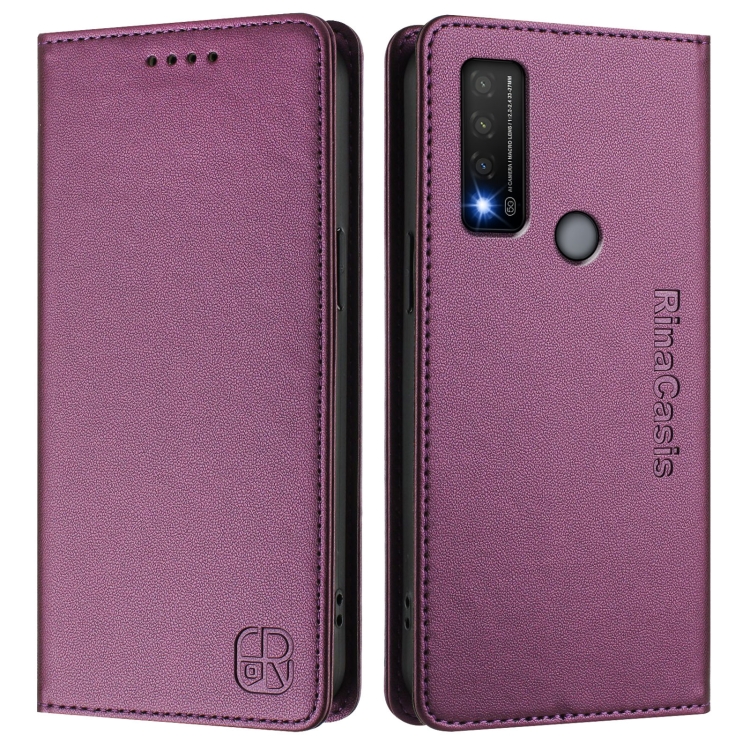Funda de Cuero Rfid para TCL 20 R 5G Rc01 con Succión Magnética y Doble Pliegue (Violeta)