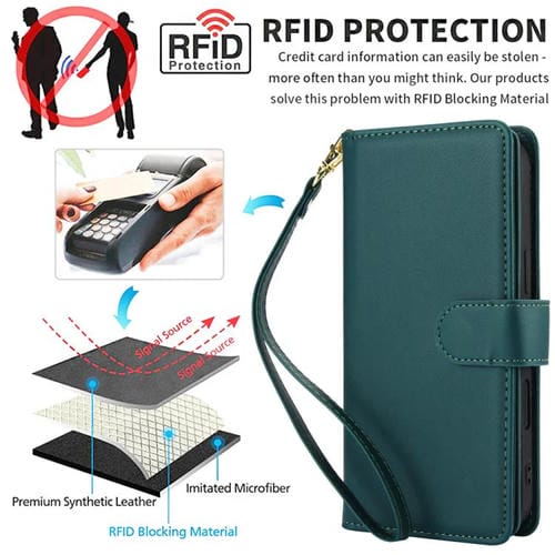 Funda de cuero RFID con tarjetero para iPhone 17 (verde)