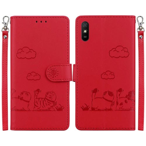 Funda de Cuero Rfid con Diseño de Gatos para Redmi 9A/9I Sport (Roja)