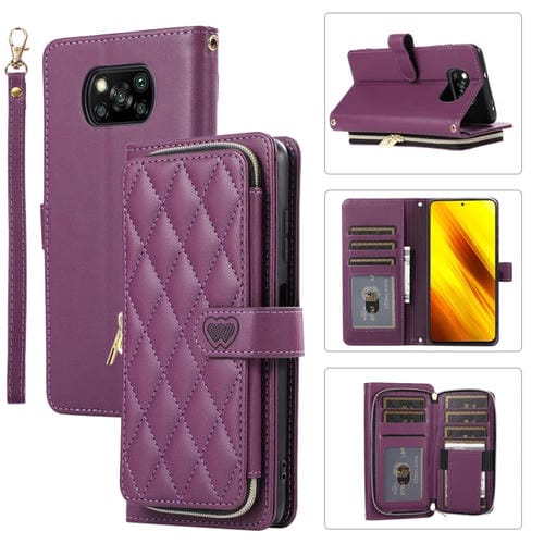 Funda de Cuero Tipo Billetera con Cremallera Completa y Diseño Rombal para Xiaomi Poco X3 Nfc (Morado Oscuro)