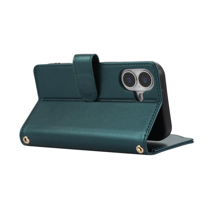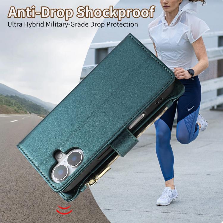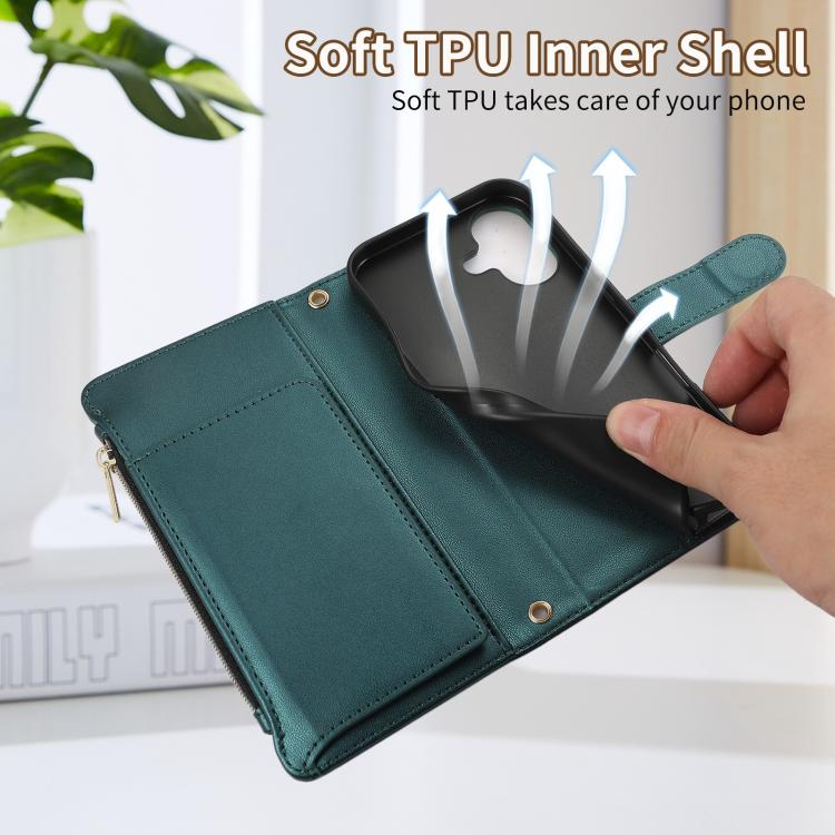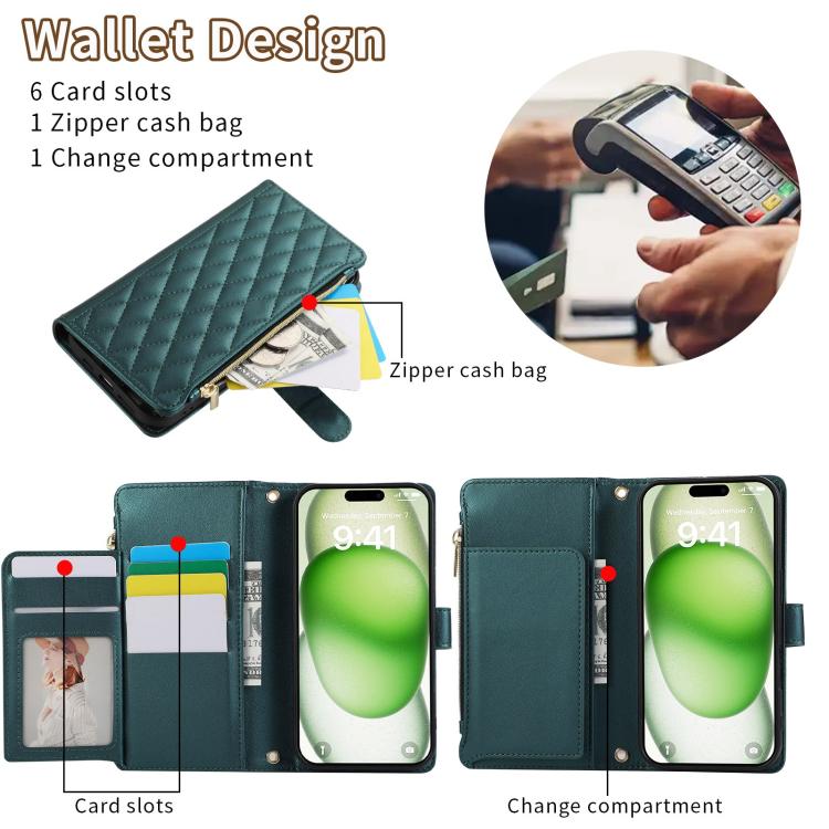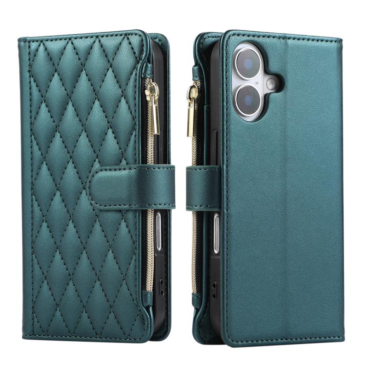 Funda Tipo Billetera Cuero con Cremallera Rombo para iPhone 16 (Verde)