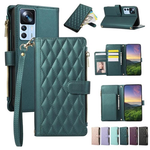 Funda de Cuero Tipo Billetera con Cremallera Rombal para Xiaomi 12T/12T Pro (Verde)