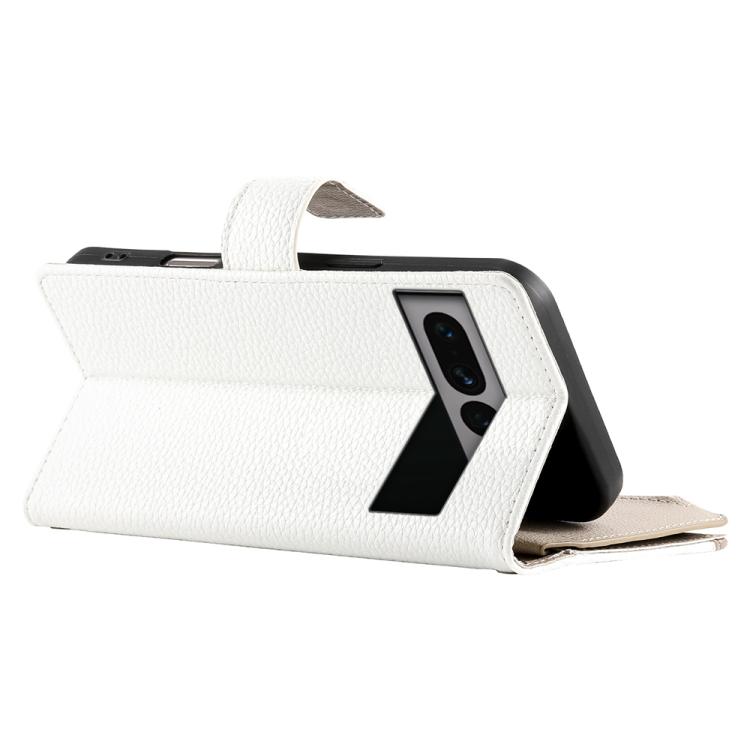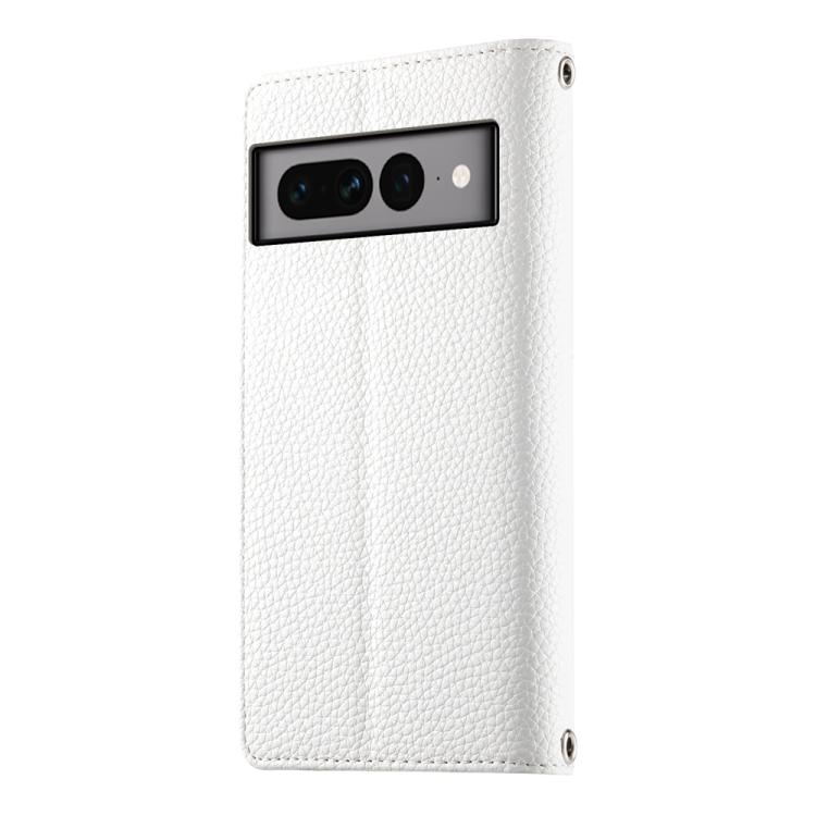 Funda de cuero tipo billetera con cremallera y múltiples tarjetas para Google Pixel 7 Pro con costuras y correa corta (blanca)