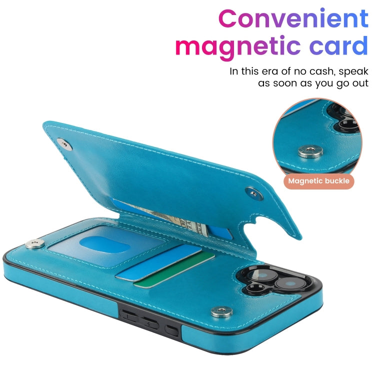Funda Tipo Billetera Cuero Mandala Doble Hebilla para iPhone 16 (Azul)