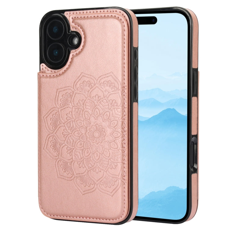 Funda Tipo Billetera Cuero con Doble Hebilla y Mandala para iPhone 16 (Oro Rosa)