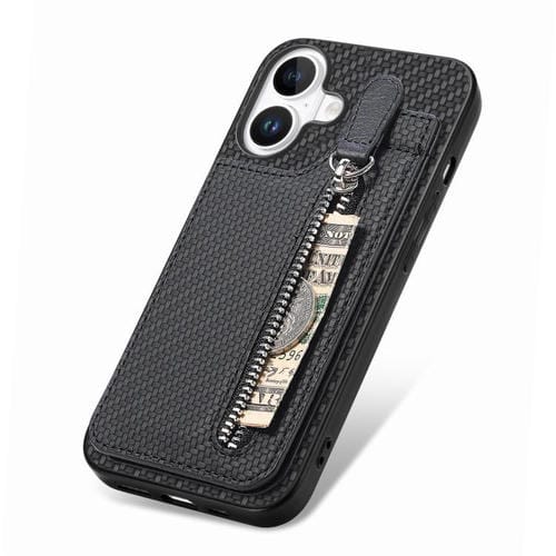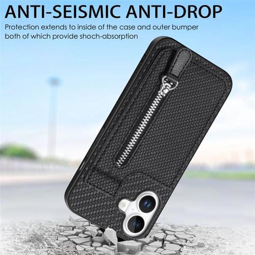 Funda de fibra de carbono con cremallera vertical para iPhone 17 (negra)