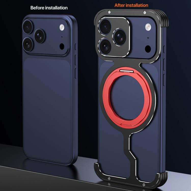 Funda de metal con disipación de calor y soporte magnético MagSafe sin marco para iPhone 17 Pro Max (negro y rojo)