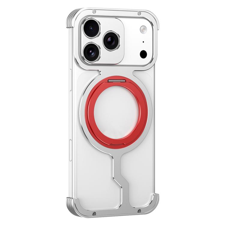 Funda de metal con disipación de calor y soporte magnético MagSafe sin marco para iPhone 17 Pro (plateado y rojo)