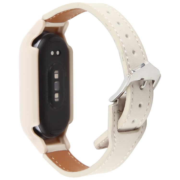 Funda de PC para Xiaomi Smart Band 9 con correa de cuero de microfibra integrada (beige + beige blanco)