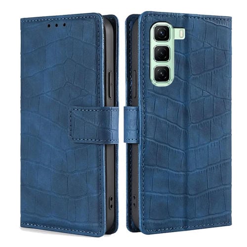 Funda de Piel para Infinix Hot 50 4G con Cierre Magnético y Diseño de Cocodrilo (Azul)