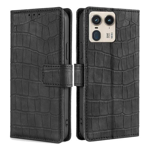 Funda de Piel con Cierre Magnético y Tacto de Cocodrilo para Motorola Edge 50 Ultra (Negra)