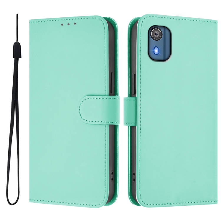 Funda de Piel con Cordón para Nokia C02 con Tacto de Piel (Verde Menta)
