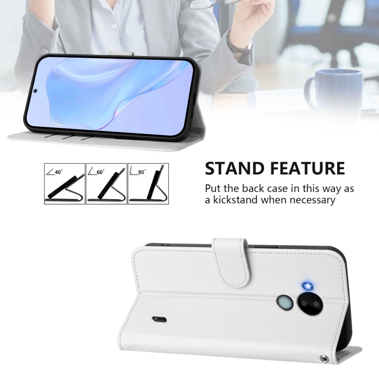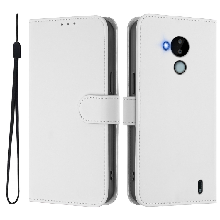 Funda de Piel con Cordón para Nokia C30 (Blanco) Color Liso y Tacto Agradable