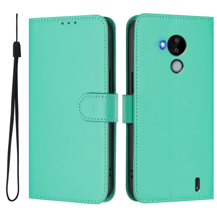 Funda de Piel con Cordón para Nokia C30 (Verde) Color Liso y Tacto Agradable