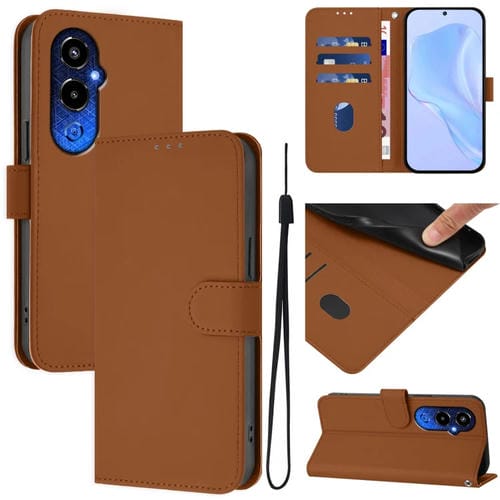 Funda de Cuero con Textura de Piel y Cordón para Tecno Pova 4 Pro (Marrón)