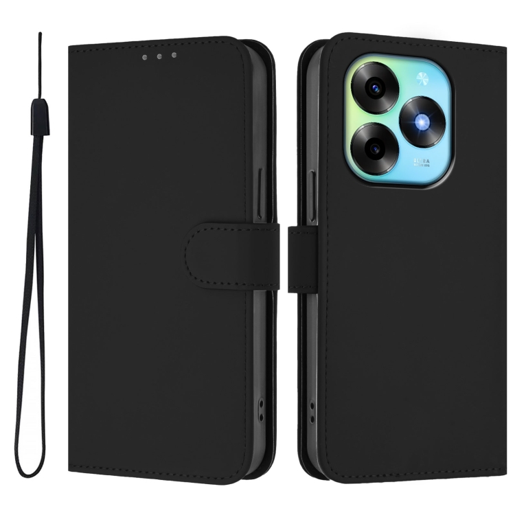 Funda de Piel con Cordón para Teléfono Itel S23+ Diseño Piel Sintética (Negro)