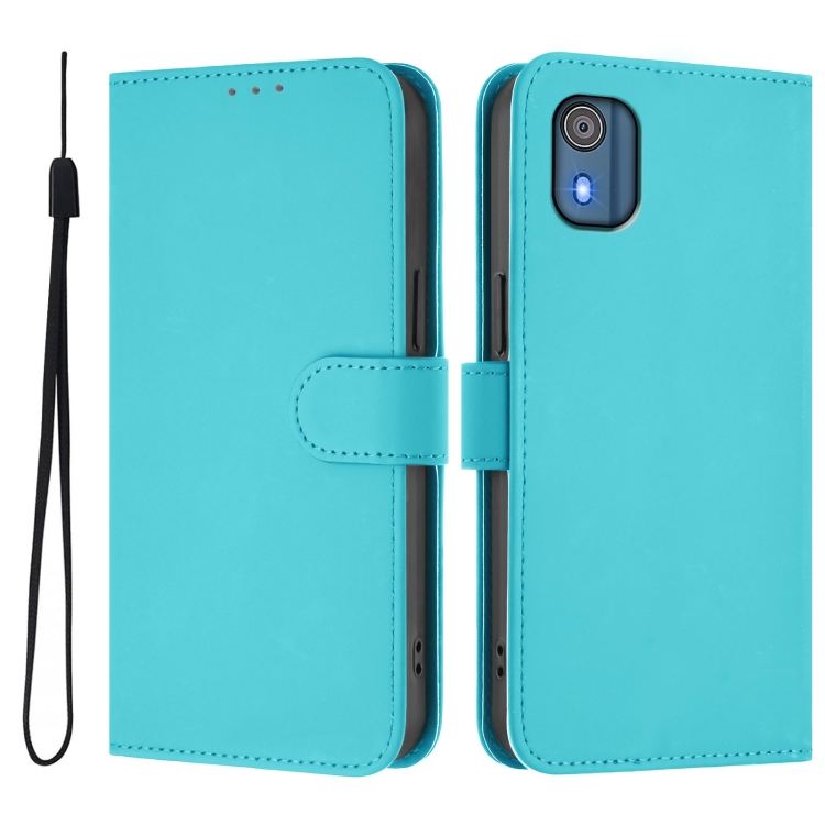 Funda de Piel con Cordón para Teléfono Nokia C02 (Azul Lago) Tacto Suave