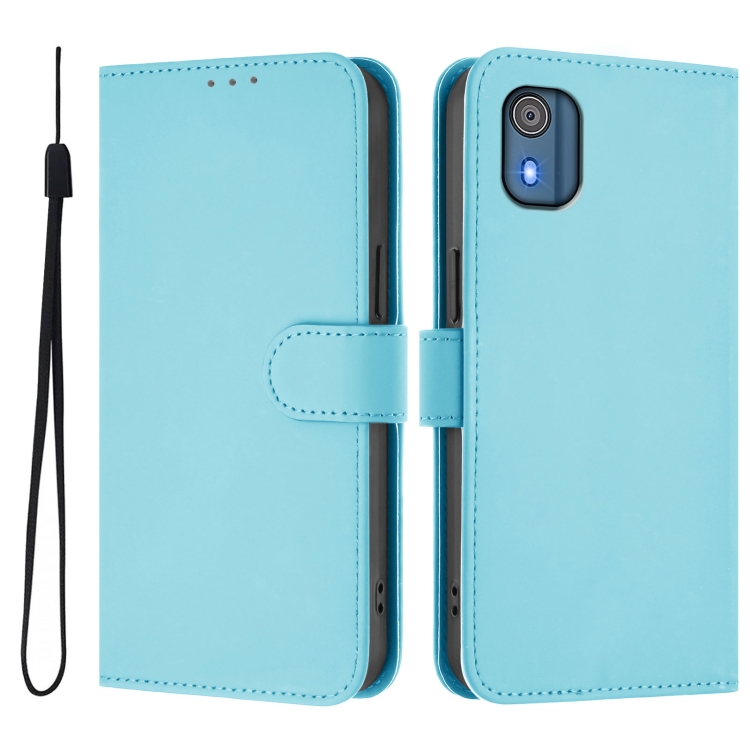 Funda de Piel con Cordón para Teléfono Nokia C02 (Azul Cielo) Tacto Suave